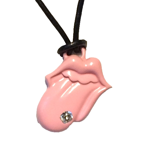 Onder licentie gemaakte roze (dames)hanger van ca. 20 x 25 mm. met zirkoniaatje en geleverd inclusief zwart koord.