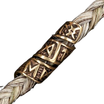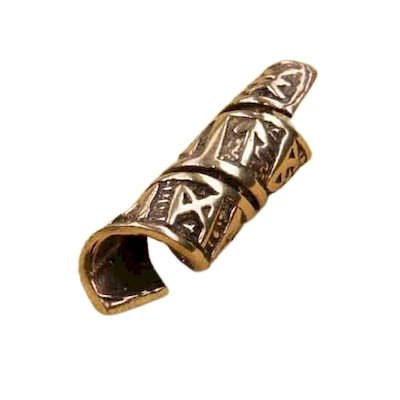 Mooie bronzen baardkraal met Keltische runen. De baardkraal heeft een lengte van ca. 20 mm. en een binnendiameter van ca. 8 mm.