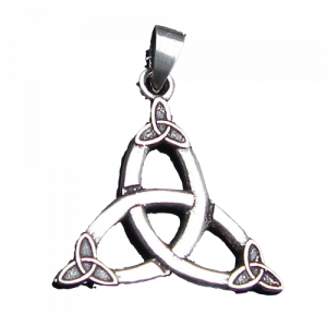 De triquetra is een Middeleeuws symbool met drie in elkaar grijpende cirkels en waarvan de Latijnse naam ‘driehoekig’ betekent. Waarschijnlijk hangt de betekenis samen met de Keltische heilige drievuldigheid: Leven, Dood en Wedergeboorte, alsook de drie natuurkrachten: land, lucht en zee.