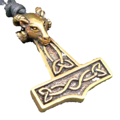 Fraaie bronzen Keltische hanger Thor’s hamer met ramskop.