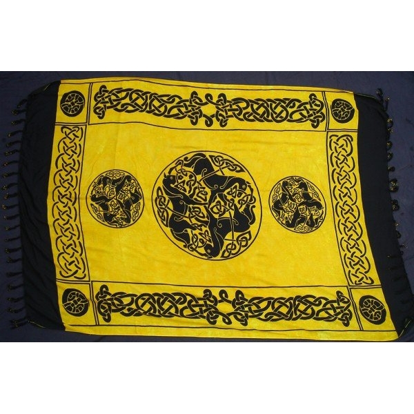 Decodoek met Keltische paarden. Verkrijgbaar in drie prachtige kleurcombinaties zwart/geel, zwart/rood en zwart/paars.