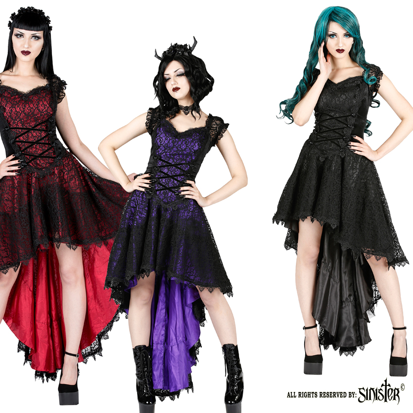 Ontdek deze schitterende mouwloze gothic hoog-laag jurk van het merk Sinister.