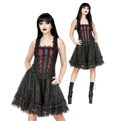 Geef je garderobe een duistere, elegante upgrade met deze prachtige gothic mouwloze minijurk van Sinister.