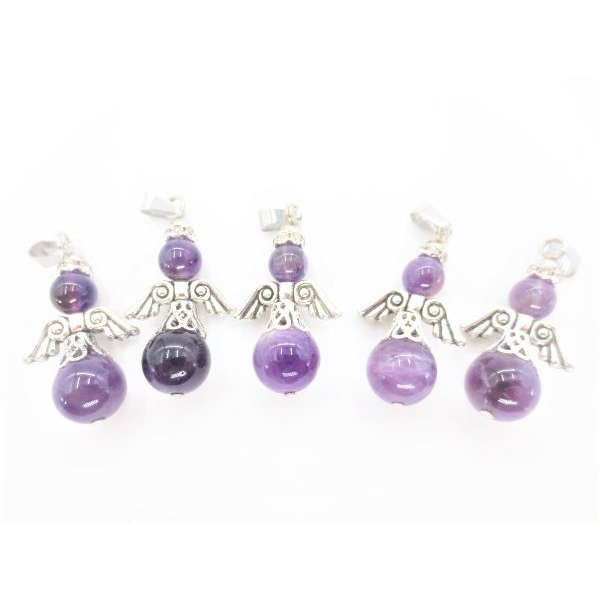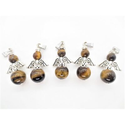 Leuke hanger met engeltje van edelsteen, in de variant tijgeroog, onyx, amethist of rode koraal.