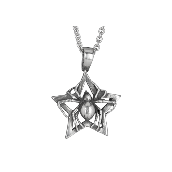 Tinnen hanger pentagram met spin