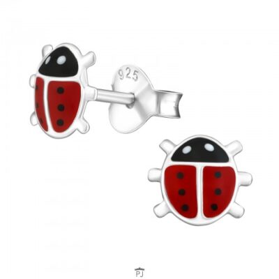 Zilveren kinder oorstekers lieveheersbeestje