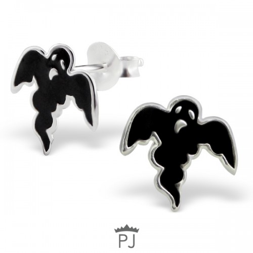Zilveren kinder oorstekers zwart spookje