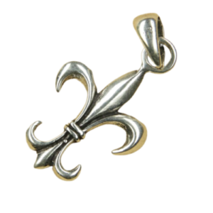 Fraaie edelstalen hanger kruis, versierd met Middeleeuwse lelies en in het midden een zwarte zirkonia.