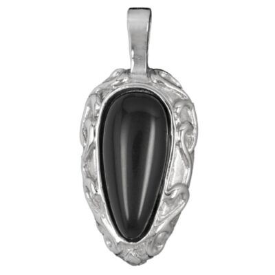 RVS hanger medaillon met grote zwarte steen ingelegd. Afmeting van de hanger is ca. 18 x 40 mm. incl. oog.