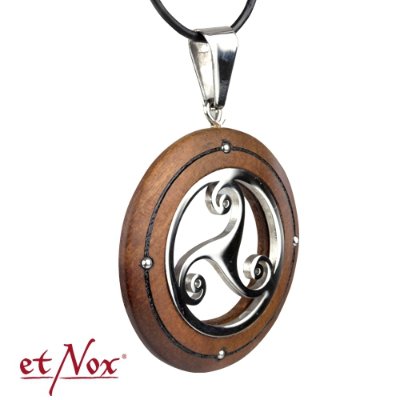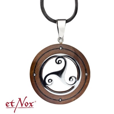 Schitterende hanger met Keltische triskel. De hanger is vervaardigd van hoogwaardig roestrij staal en walnotenhout en wordt geleverd met een zwart koordje inclusief verstelbare sluiting. De hanger is van het merk etNox uit de collectie magic and mystic, Wooden Circle.