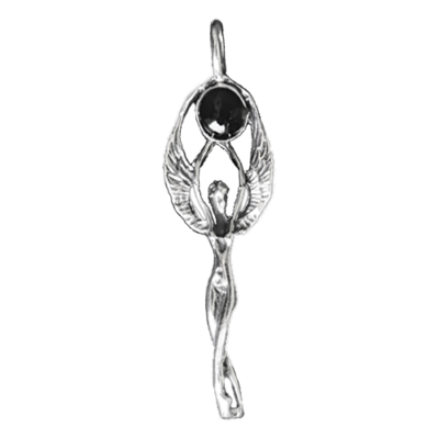 Leuk 925 Sterling zilveren elfenhangertje met een klein onyxsteentje. Afmeting van de hanger ca. 42 x 12 mm.