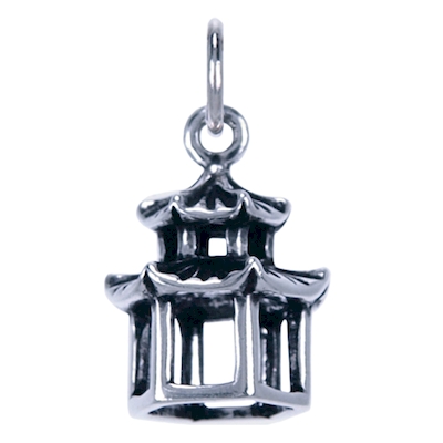 Hele fraaie Chinese pagode hanger. De hanger is vervaardigd van 925 Sterling zilver en is ca. 20 x 11 mm. groot incl. oogje.