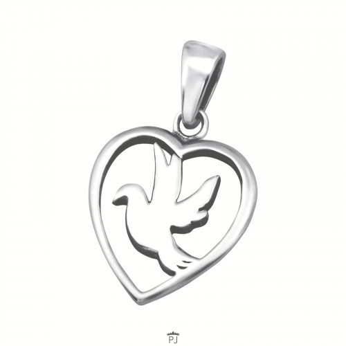 Leuk 925 Sterling zilveren hangertje hartje met duif.