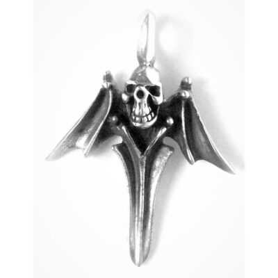 Mooi 925 Sterling zilveren hanger van een kruis met vleugels en een doodskop in het midden.