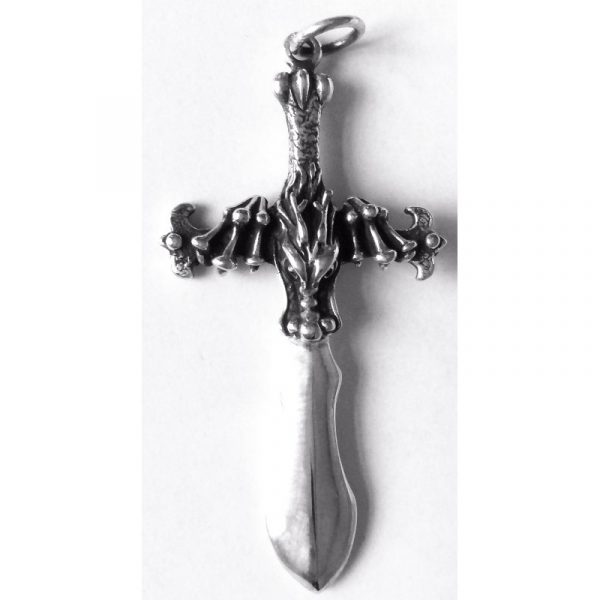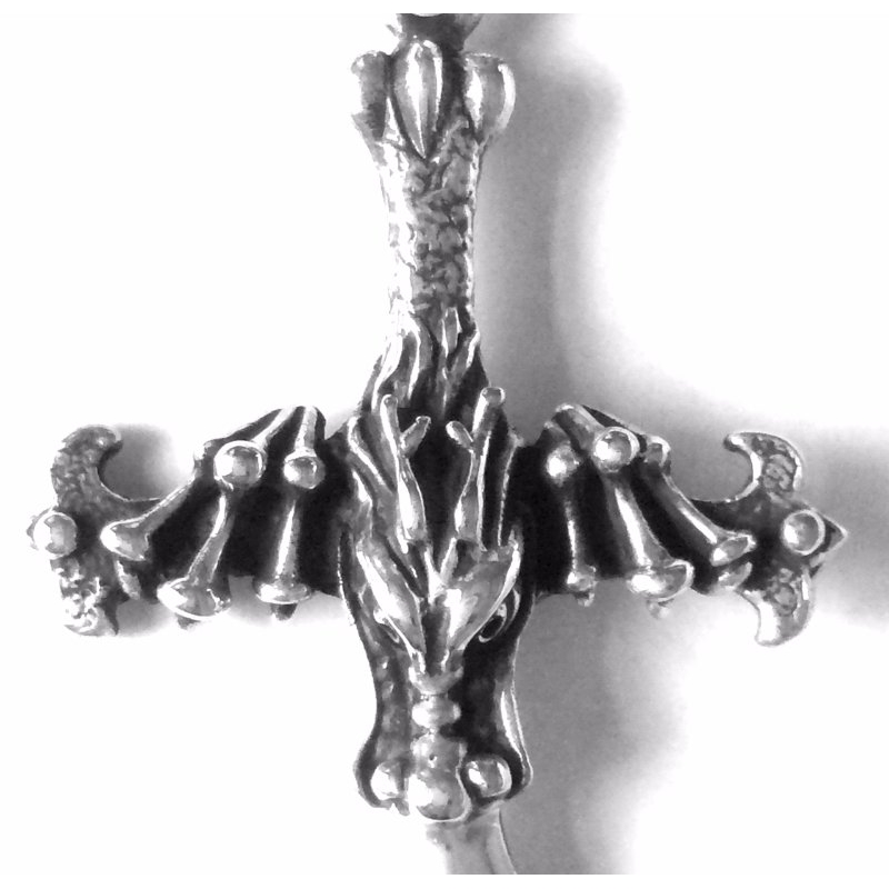 Mooie 925 Sterling zilveren hanger kruis met in het midden een drakenkop en 2 drakenklauwen.