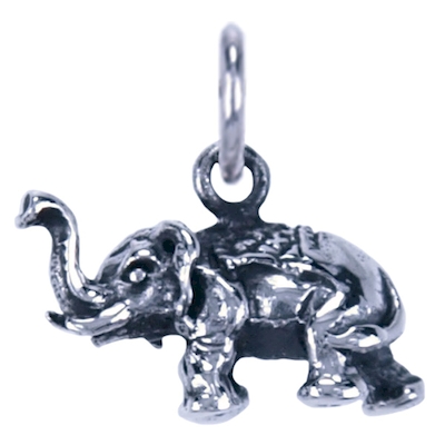Leuke hanger olifant met slurf omhoog. De hanger is vervaardigd van 925 Sterling zilver en is ca. 13 x 17 mm. groot incl. oogje.