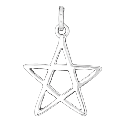 Het pentagram is een vijfpuntige ster, met de punt omhoog staat zij voor goed (gericht naar de hemel) en met de punt omlaag voor slecht (gericht naar de duivel).