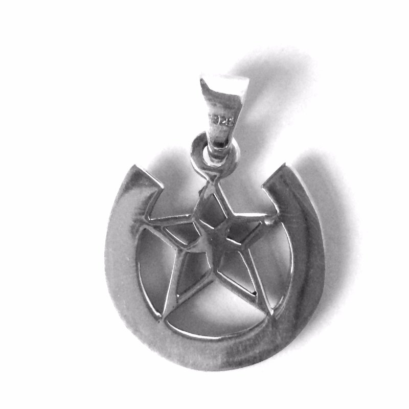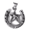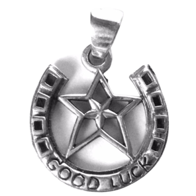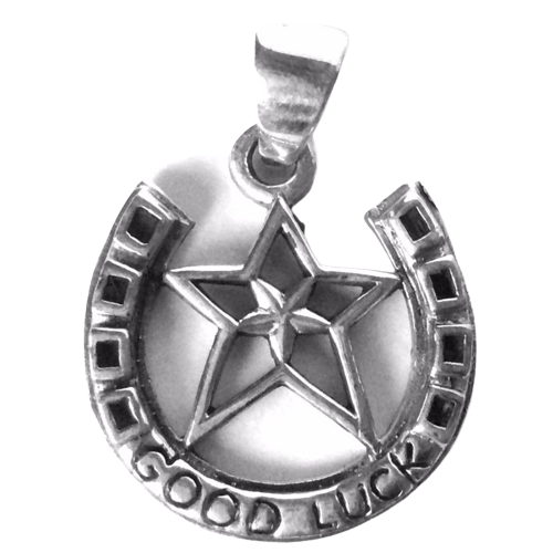 Mooie 925 Sterling zilveren hanger pentagram in hoefijzer, met de tekst “good luck”.
