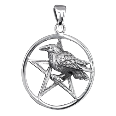925 Sterling zilveren hanger pentagram met raaf in het midden. Doorsnee van de hanger ca. 22 mm.