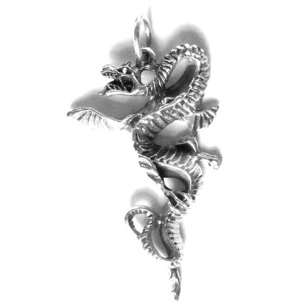 Sierlijke drakenhanger uitgevoerd in 925 Sterling zilver.