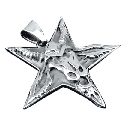925 Sterling zilveren hanger ster met een ramskop erop afgebeeld.