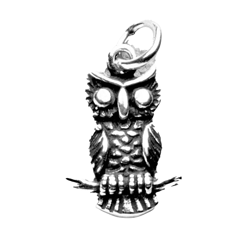 Fraai bewerkt 925 Sterling zilveren hangertje van een uiltje op een tak.