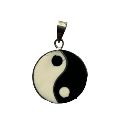 Mooie 925 Sterling zilveren hanger met yin yang symbool in emaille. Doorsnede van de hanger is ca. 19 mm.