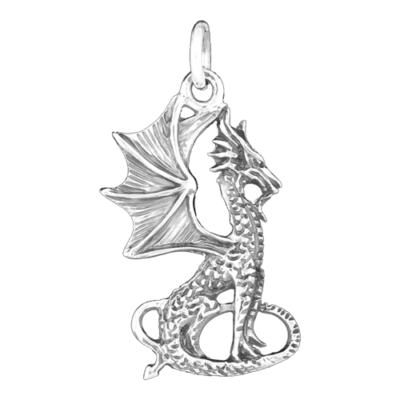 Zilveren hanger zittend draakje