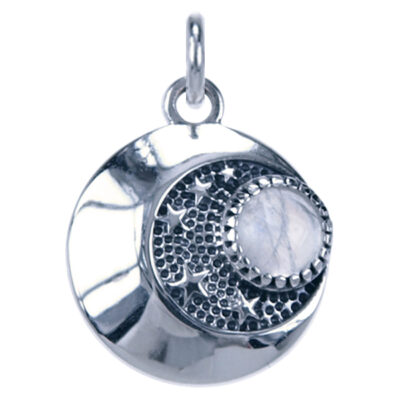 Prachtige 925 Sterling zilveren hanger zon, maan en sterren. De hanger heeft een klein maansteentje en is 14 x 21 mm. groot.