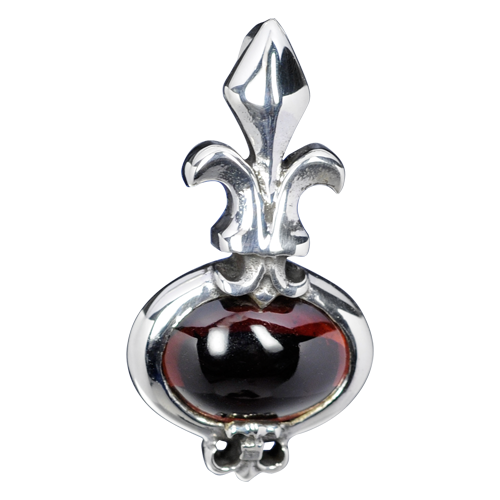 Hele mooie 925 Sterling zilveren granaathanger met een Franse lelie, ook wel Fleur de lis.