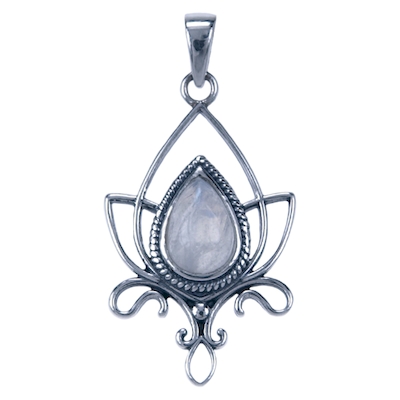 Prachtige lotushanger met mooie maansteen. De hanger is vervaardigd van 925 Sterling zilver en is ca. 32 x 18 mm. groot incl. oogje.