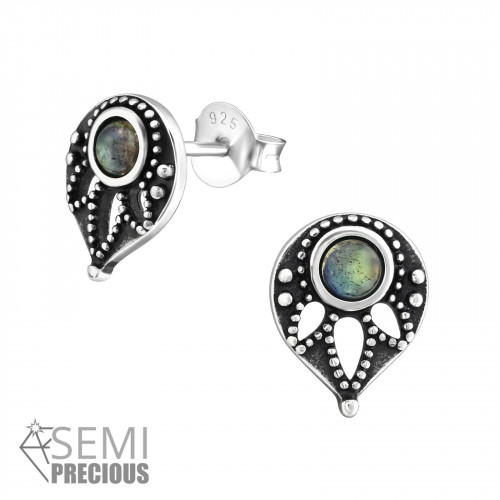Prachtige bewerkte oorstekers met een klein labradoriet steentje.