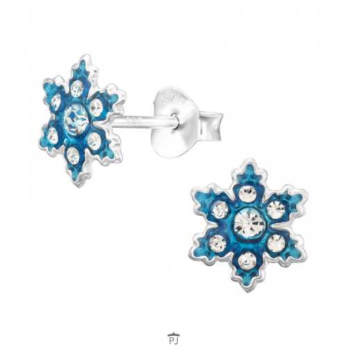 Mooie oorstekers sneeuwvlok in blauw met kleine kristalletjes. De oorstekers en stoppers zijn vervaardigd van 925 Sterling zilver. De diameter van de oorstekers is ca. 8,5 mm.