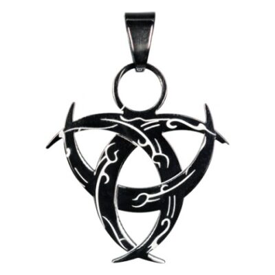 Zwarte roestvrijstalen hanger met zilverkleurige belijningen van het Vikingen symbool Odin’s hoorn.